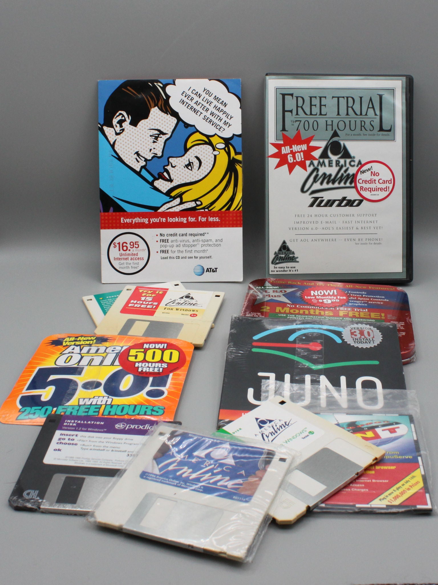 This is a lot of Free Trial disks for America Online, Juno, Prodigy, AT&T and the like.