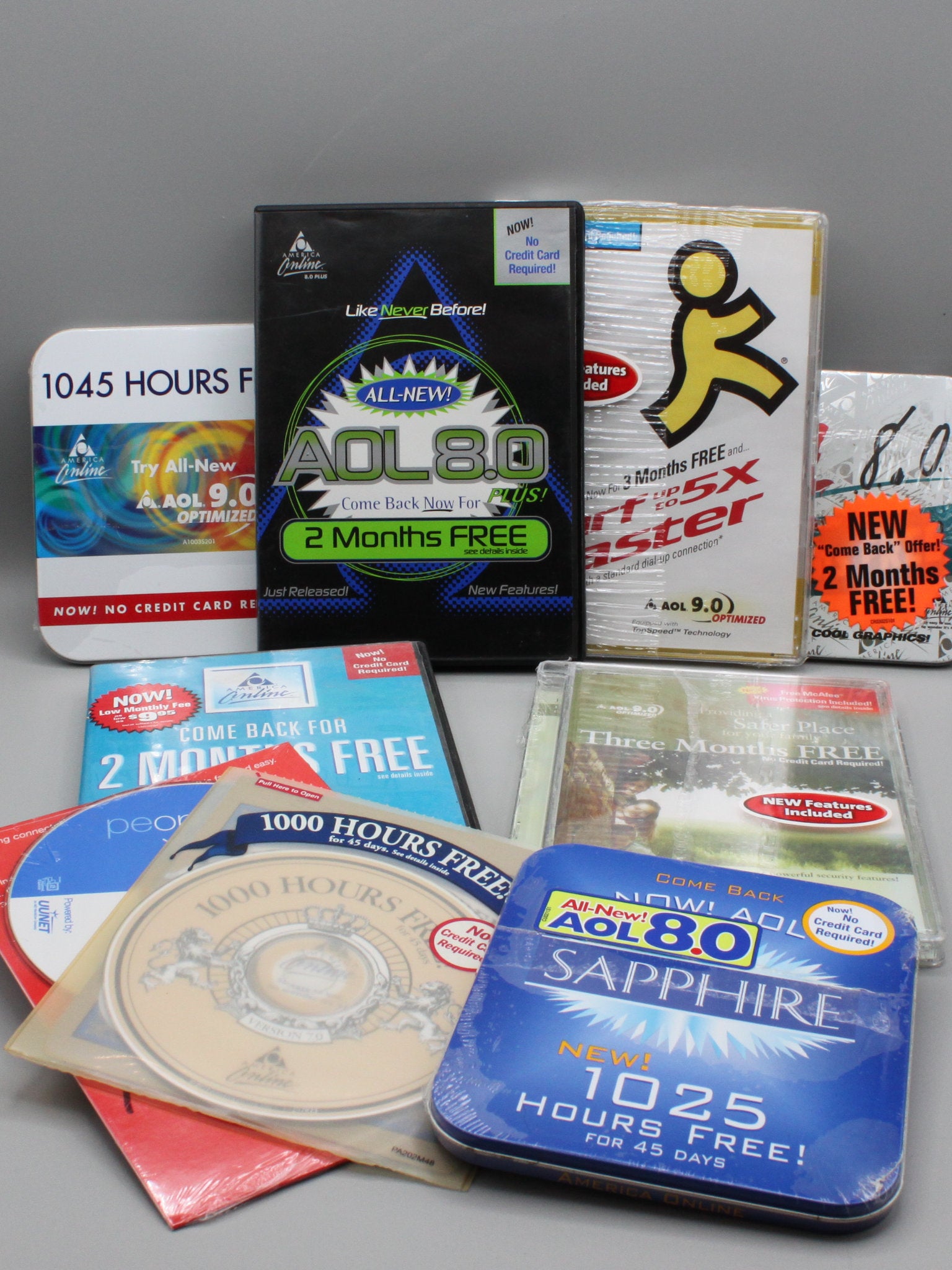 This is a lot of Free Trial CD ROMs for America Online and one People PC disk.